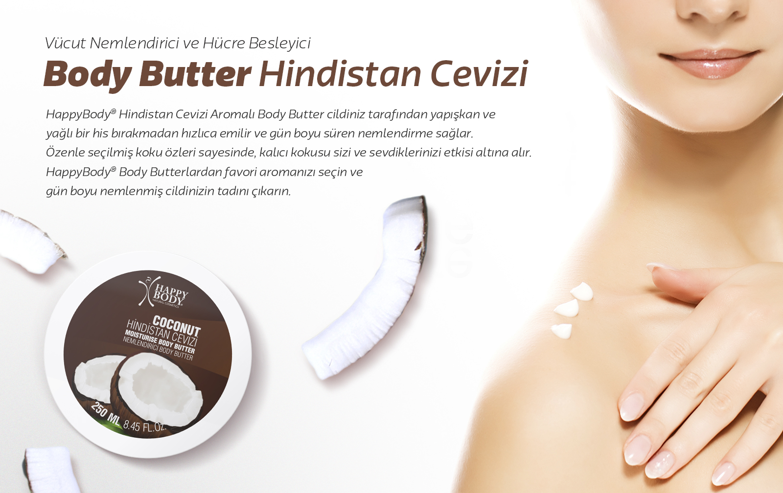 Fildişi sahillerinin tropikal havası ve egzotik kokusunu içinde barındıran Happy Body Hindistan Cevizli Body Butter vazgeçilmeziniz olacak.