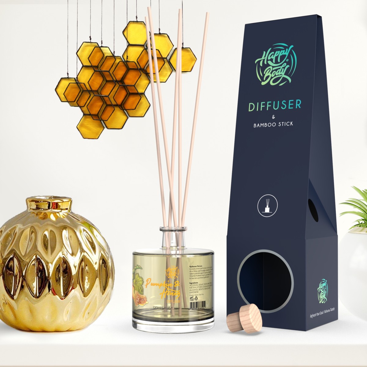 Kabak ve Bal Aromalı Bambu Çubuklu Oda Kokusu / Diffuser